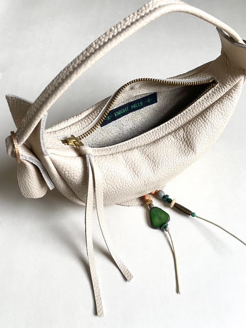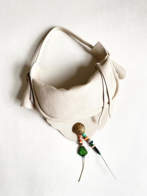 PAGAN SUN OVER AN ABSTRACT SUMMERInspiration + DetailsPagan Sun Deity, The Wicker Man + North American IndiansThe printed canvas lining is taken from a painting by designer Sacha Mills which was inspired by Mid Century Painterly Barkcloth fabrics.The bag and brass parts are all made in UK.Beads are a mix of brass,wood and Tagua nut.Tagua nuts are found on a type of palm grown in South America.The beads are hand cut, hand shaped +hand dyed. The Tagua nut is sometimes known as cruelty free ivory or vegetable ivory and it creates very strong beads.Hand made in Wales