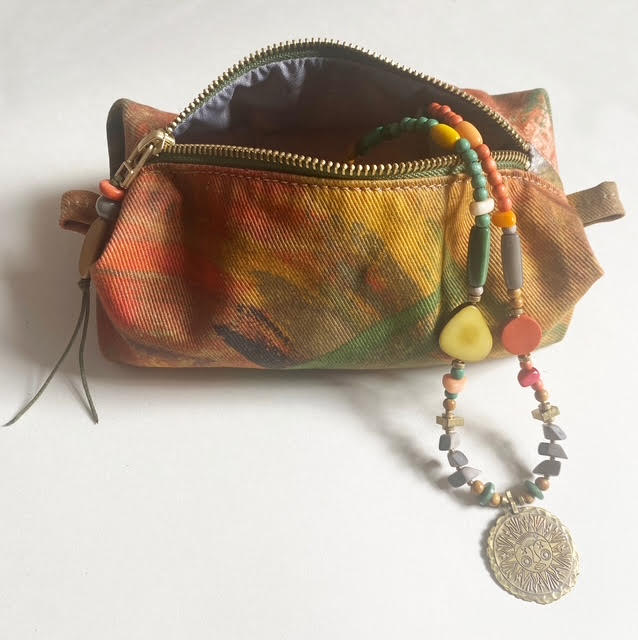 Beads are a mix of brass,wood and Tagua nut.Tagua nuts are found on a type of palm grown in South America.The beads are hand cut, hand shaped +hand dyed. The Tagua nut is sometimes known as cruelty free ivory or vegetable ivory and it creates very strong beads.