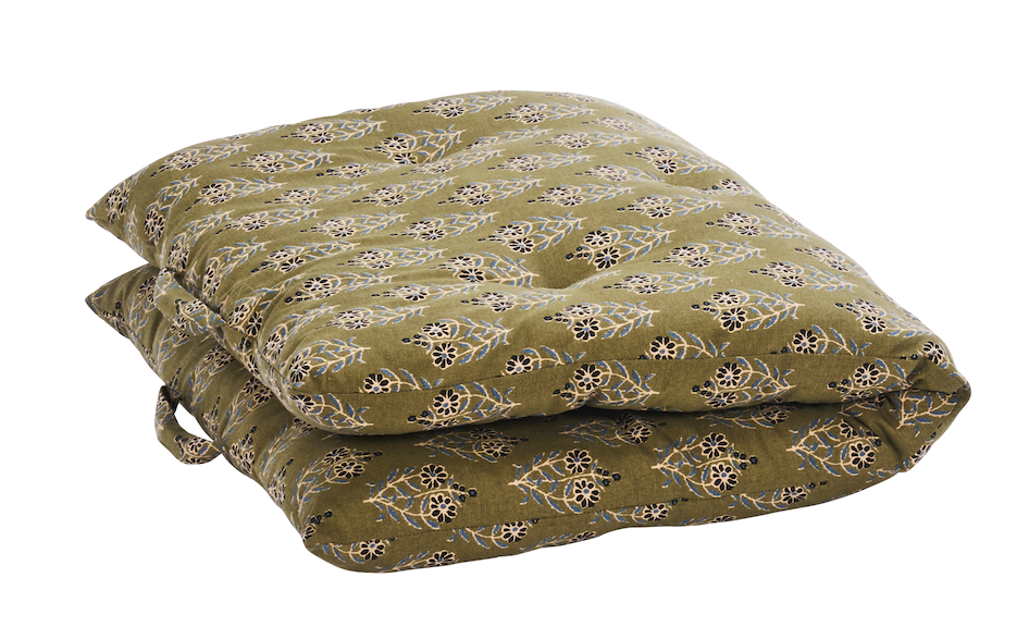 This versatile cotton mattress, crafted in South India, enhances any space with its vibrant design. Whether upholstering a lounge chair or refreshing a sofa, it offers both style and comfort. Perfect for creating a cozy spot on a terrace or directly on the ground, the options for use are numerous. Featuring a print inspired by traditional Indian block prints, it showcases colors like olive, nude, blue, and black. Avoid direct sunlight exposure to prevent color fading.