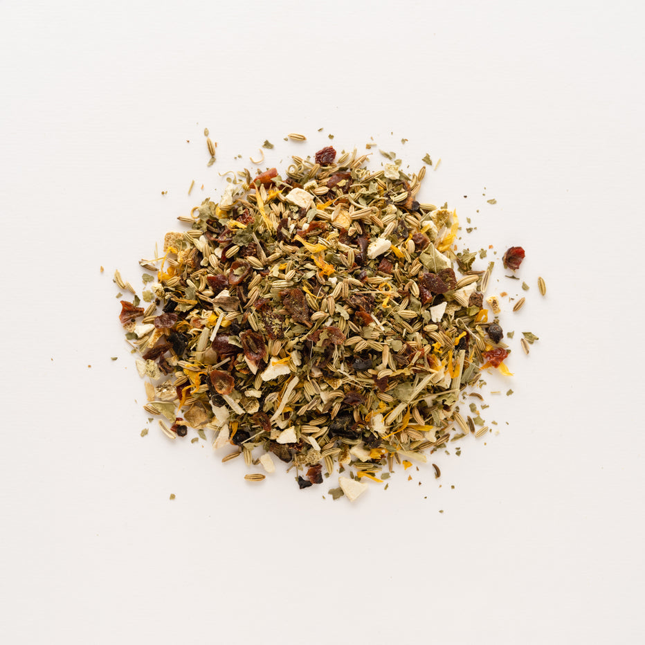 Herbs that are prebiotic, feeding the 'good bacteria' of the gut. Nutritious skin herbs rich in antioxidants and healing properties of calendula & rose hip .