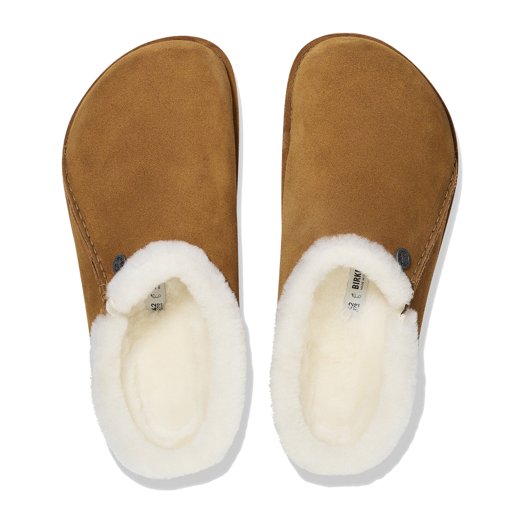 Slip it on for instant well-being and snugness! The BIRKENSTOCK Zermatt is our first slipper with a removable footbed, allowing you to choose between three different insoles. The classic is now available in a particularly cozy premium design with shearling lining. Its natural design is down to the upper made from especially soft suede, which hugs the foot like a second skin. Our model (f) wears the narrow width. Our model (m) wears the regular width.