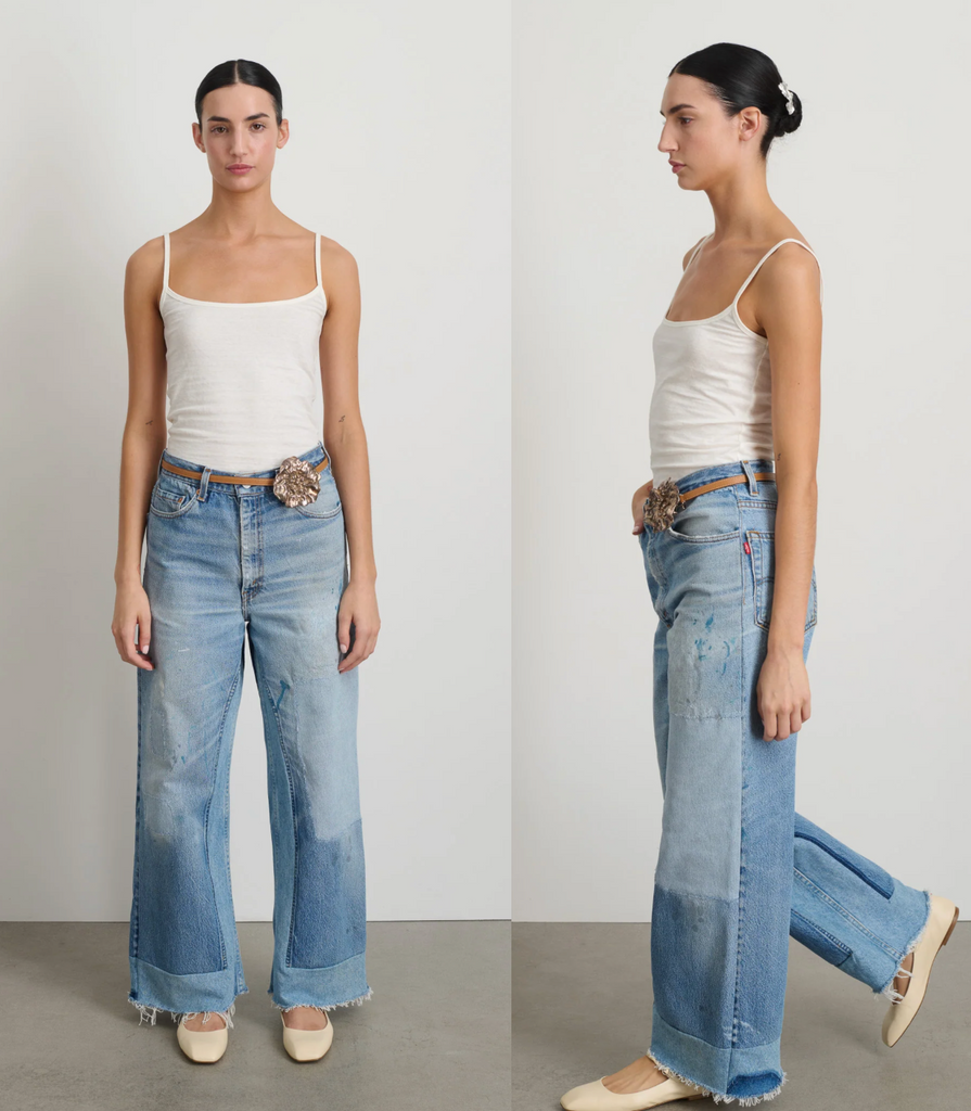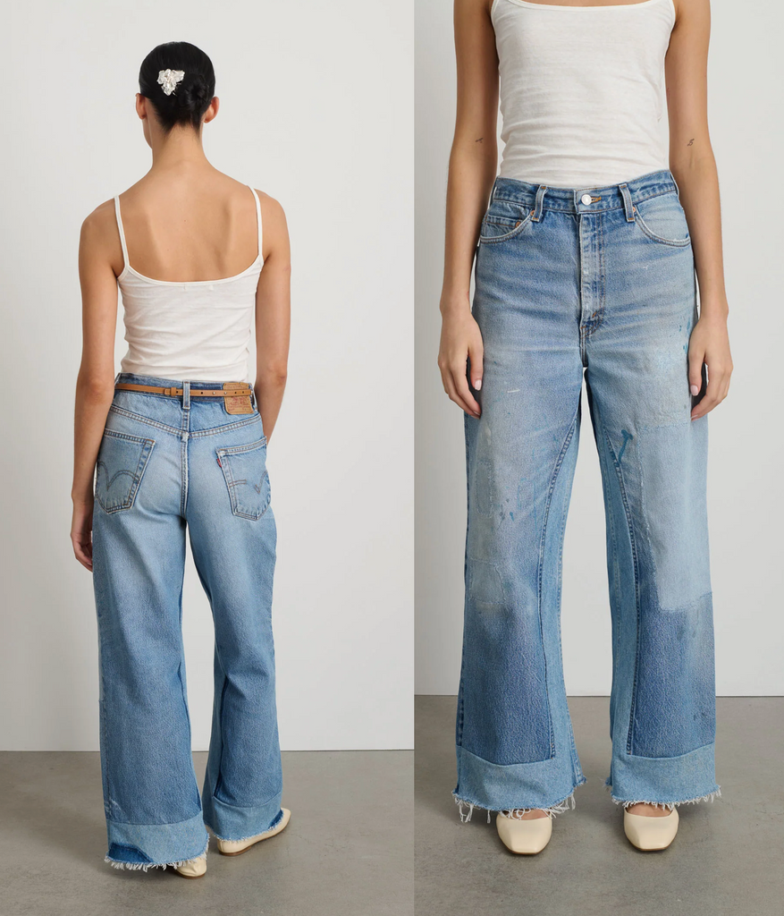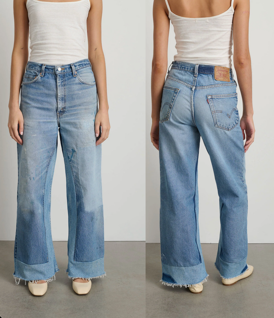 •Reworked from two pair of vintage men's 505’s or 517’s, original shank and zip fly closures and copper rivet hardware finishing
