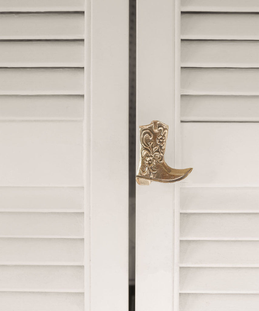 Yeehaw! Give your furniture a kick of Southwestern charm with the Dallas Boot Knob. This brass decorative handle is a nod to the wild West, perfect for adding a touch of frontier flair to your dresser, cabinets, or even doors. Each knob is carefully handcrafted by our team of artisans in India, ensuring that every piece has its own unique character and intricate detailing that captures the spirit of a cowboy boot.